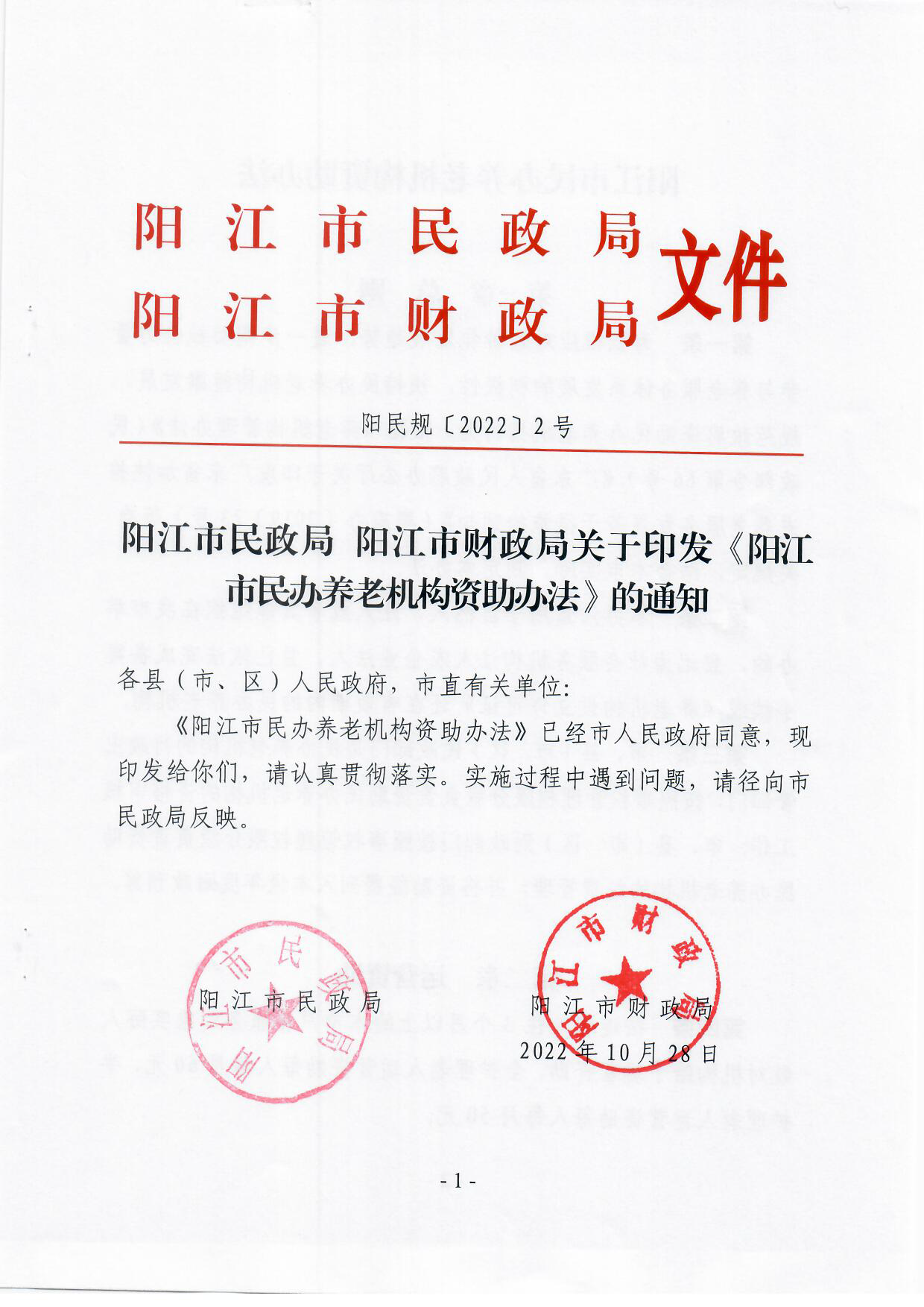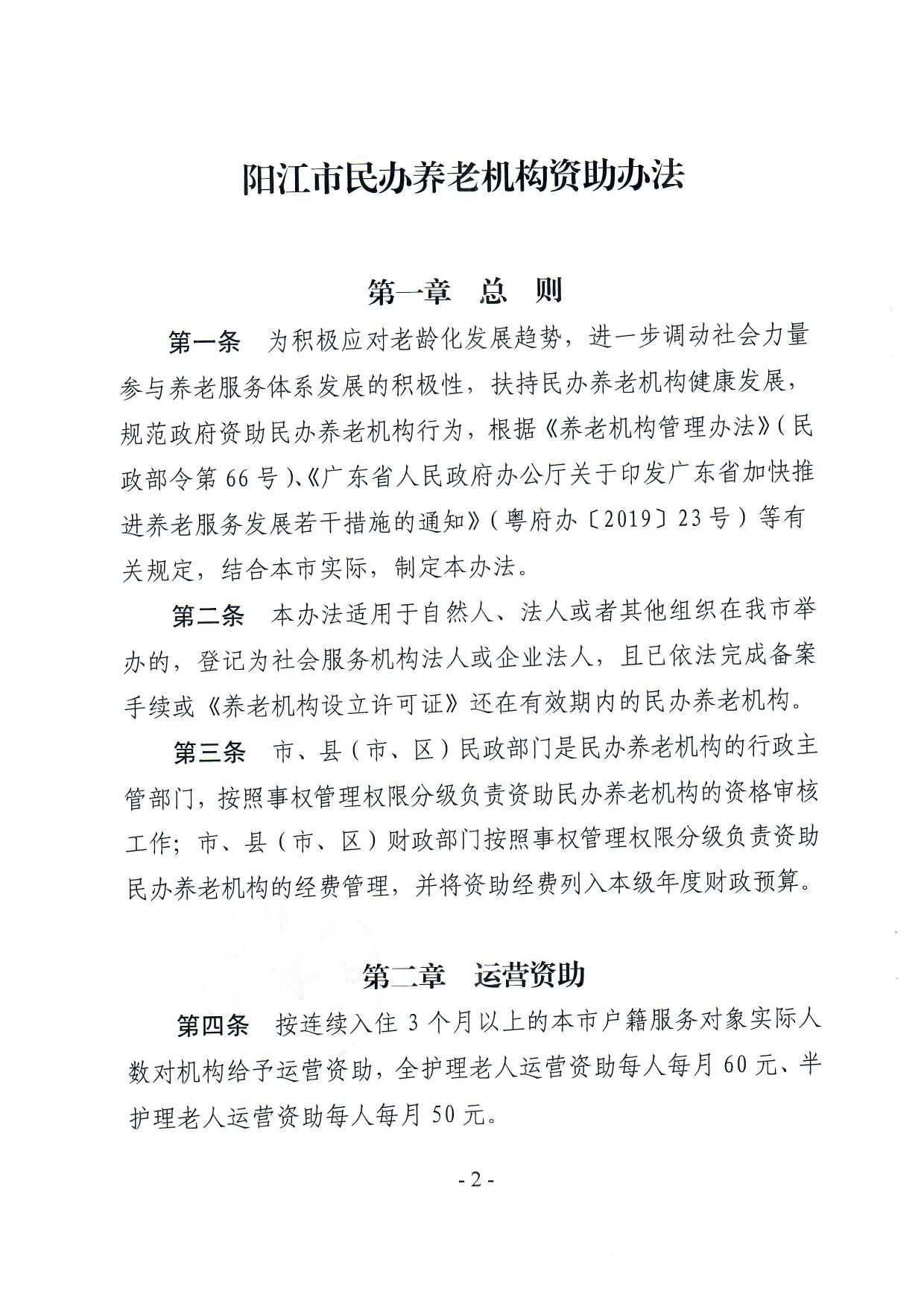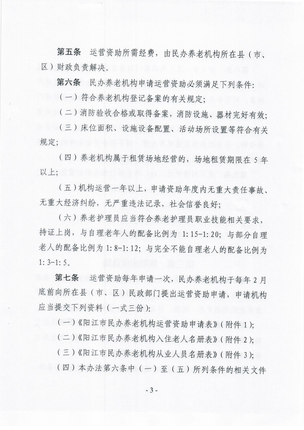 陽江市民政局 陽江市財政局關于印發《陽江市民辦養老機構資助辦法》的通知