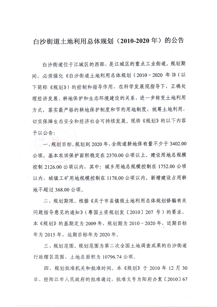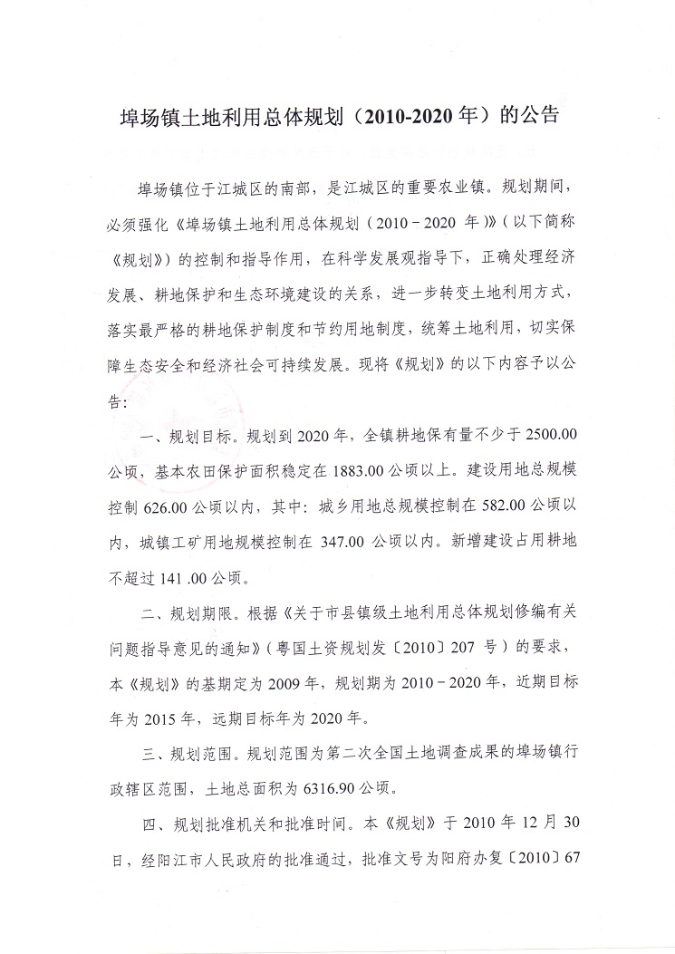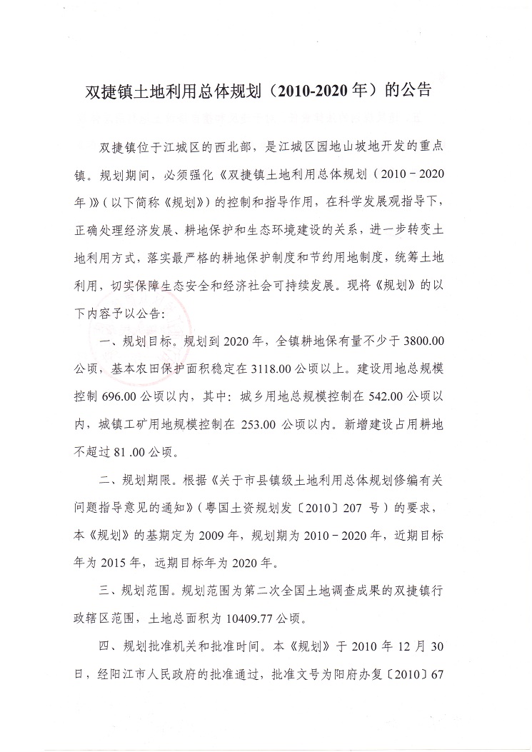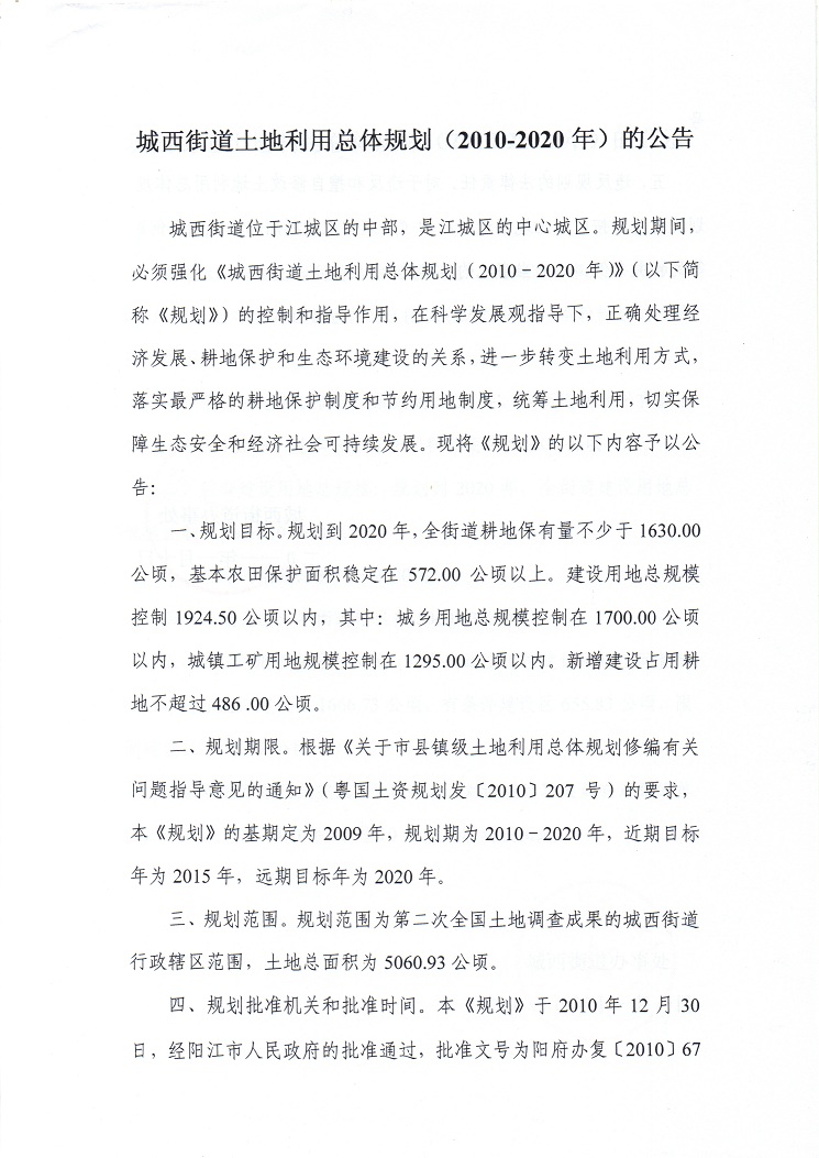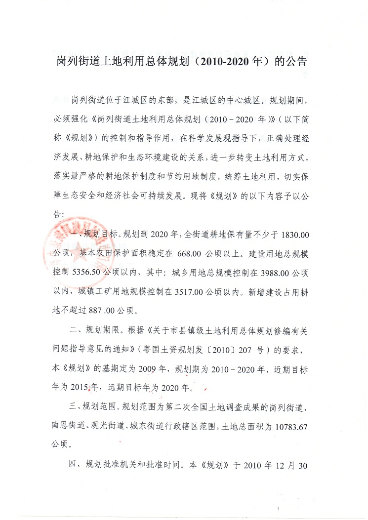 《江城區5 個鎮街土地利用總體規劃(2010-2020年)》成果公告