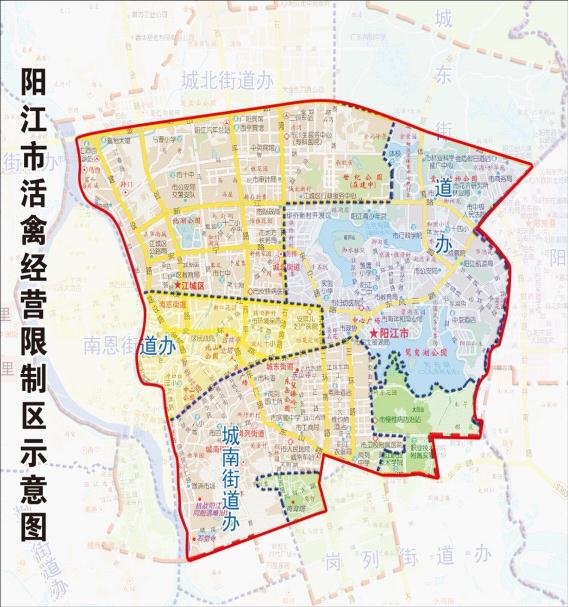 二、活禽經營限制區內設置兩個活禽零售市場:分別是限制區北部的金灣市場和限制區西部的馬曹市場。陽江市中心城區除現有的活禽批發市場外,不再新設立活禽批發市場。規劃在活禽限制區外的城北農產品批發市場中設置活禽批發市場。不得限制外地經檢疫、檢驗合格的生鮮家禽產品進入本市市場。