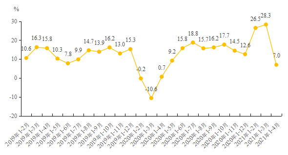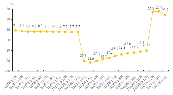 三、消費市場持續改善。1-4月,全市實現社會消費品零售總額162.72億元,同比增長23.9%,增速居全省第12位,比2019年1-4月下降1.3%,兩年平均下降0.6%。從商品分類看,其中,在促進汽車消費政策帶動下,汽車消費需求持續釋放,限額以上單位汽車類商品零售額16.99億元,增長58.5%,兩年平均增長9.8%;雖然在疫情防控常態化下,居民出行有所增多,但由于新能源汽車逐步推廣,居民趨向選擇綠色出行,石油消費恢復較慢,限額以上單位石油及制品類商品零售額11.51億元,增長10.8%,兩年平均下降4.0%。