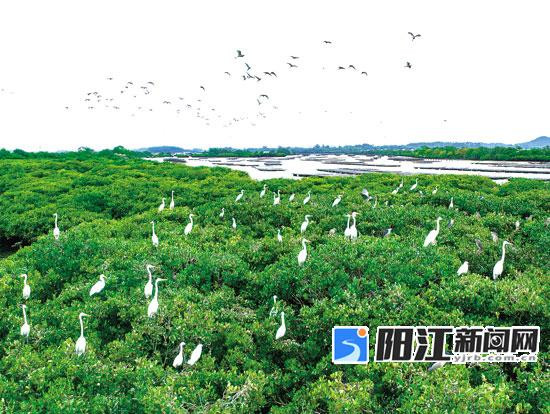 陽(yáng)西縣程村鎮(zhèn)紅樹林濕地成了鳥類棲息的綠色家園。